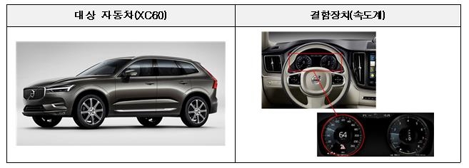 볼보차코리아에서 수입·판매한 'XC60' 등 9개 차종 5만8천165대와 폴스타코리아에서 수입·판매한 '폴스타 2 Long range single motor'(롱레인지 싱글모터) 등 2개 차종 2천410대는 계기판 소프트웨어의 오류로 계기판에 표시되는 차량 속도가 실제 차량 속도보다 낮게 표시되는 안전기준 부적합 사항이 확인됐다.