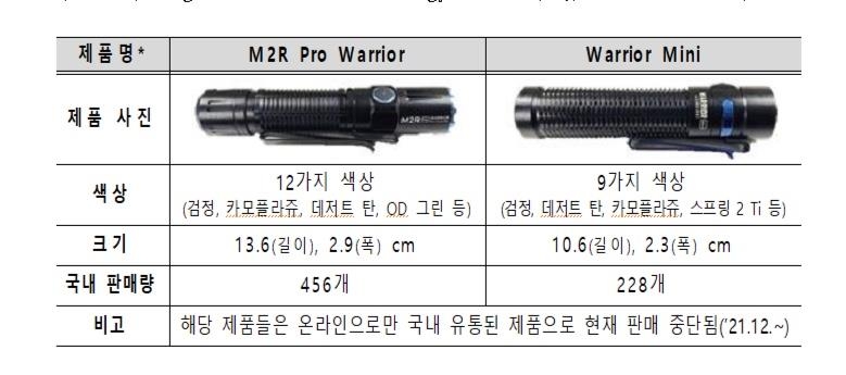 리콜되는 제품은 'M2R Pro Warrior'와 'Warrior Mini' 등 2개 제품이다.