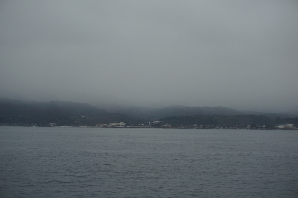 | ▲ 쾌속선에서 본 사도섬 전경 (사도=연합뉴스) 김호준 특파원 = 쾌속선에서 바라본 사도섬 전경. 잔뜩 구름이 낀 흐린 날씨로 인해 사도섬에 있는 산이 희미하게 보인다. 2022.1.3 |