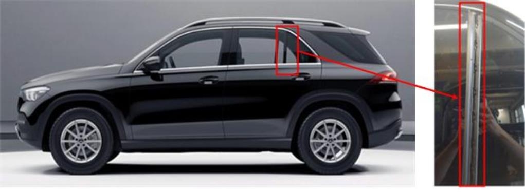 | ▲ 벤츠 뒷문 창틀 트림바 고정 불량 [국토교통부 제공] |