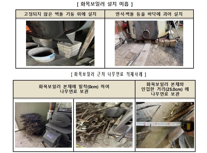 또 화목보일러는 복사열로 인한 화재를 막기 위해 본체와 벽·천장 사이 간격을 60cm 이상 확보하는 것이 바람직하지만 실내에 설치된 15대 중 11대는 이를 지키지 않았다.