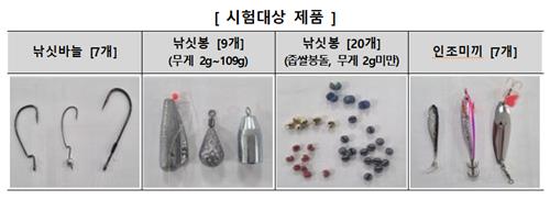 작은 크기의 낚시도구에서 나오는 납 등 유해물질은 어류가 쉽게 삼킬 수 있어 먹이사슬을 거쳐 축적될 우려가 있으므로 관리가 필요하다고 소비자원은 설명했다.