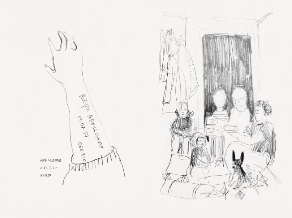 작가는 지난달 18일 이야기장수로부터 책 출간 제안을 받았다. 노트 속 그림과 글을 파일로 묶고, 급박한 상황에서 즉흥적으로 쓴 글을 보완했다. 편집자인 이연실 이야기장수 대표와 번역가 정소은 씨가 밤낮으로 소통해 20일도 채 안 돼 이달 5일 책 제작을 넘겼다. 출판사는 낱장 사진으로 받은 그림의 연필 선 하나하나와 글의 원문을 그대로 살렸다.
