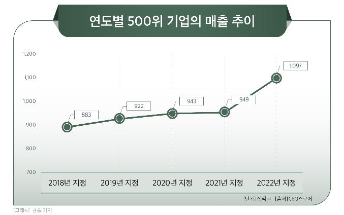 | ▲ 연도별 500위 기업 매출 추이 [CEO스코어 제공·재판매 및 DB 금지] |