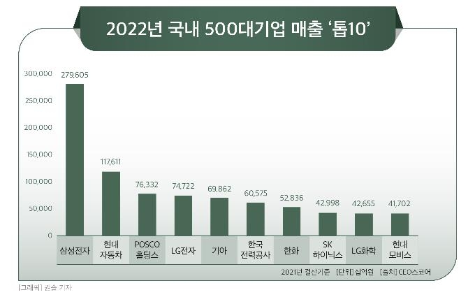 | ▲ 2022년 국내 500대기업 매출 톱10 [CEO스코어 제공·재판매 및 DB 금지] |