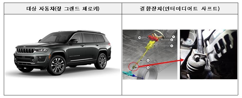스텔란티스 지프 그랜드 체로키 1천479대는 인터미디어트 샤프트(조향 휠과 조향 기어를 연결하는 중간축) 조립 불량으로 연결 부위가 분리돼 조향이 불가능해지고 사고가 발생할 가능성이 확인됐다. 시정조치는 12일부터다.