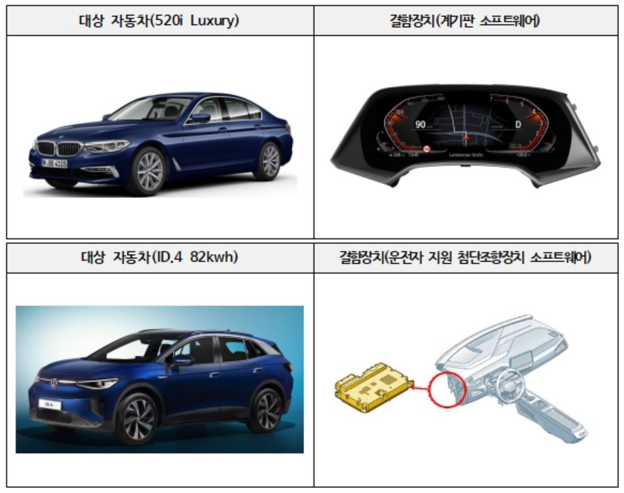 | ▲ 리콜 대상인 BMW 520i 럭셔리와 폭스바겐 ID.4 82kWh [국토교통부 제공. 재판매 및 DB 금지] |