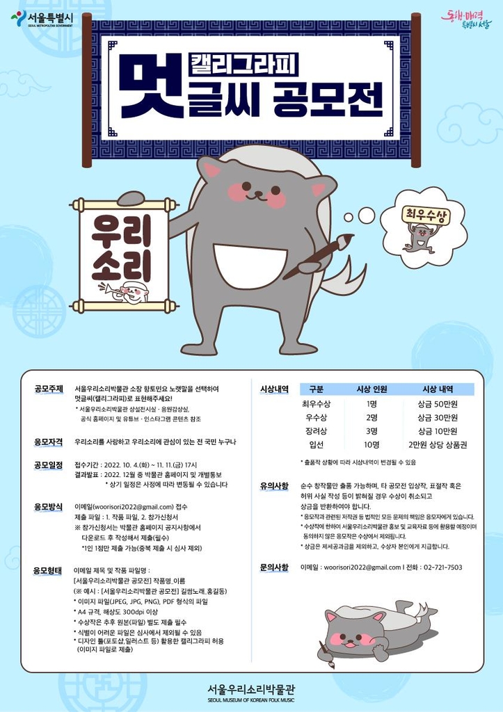 [게시판] 서울우리소리박물관, 멋글씨 공모전