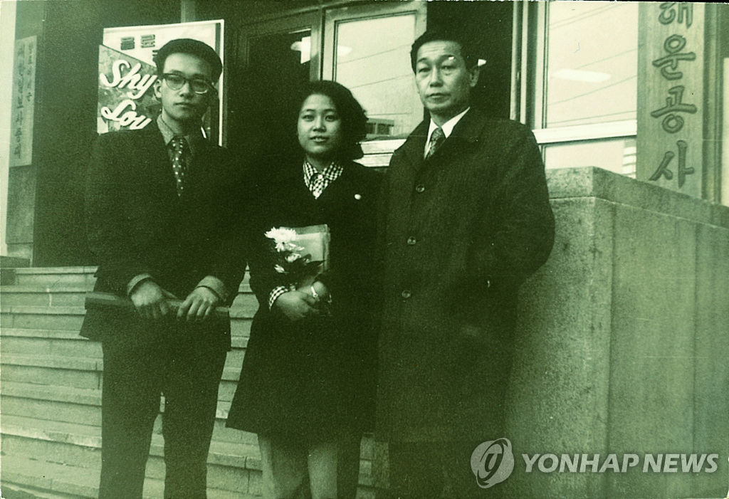 | ▲ 1973년 대한일보 신춘문예 당선후 정호승(맨왼쪽), 여동생, 아버지 [본인 제공] |