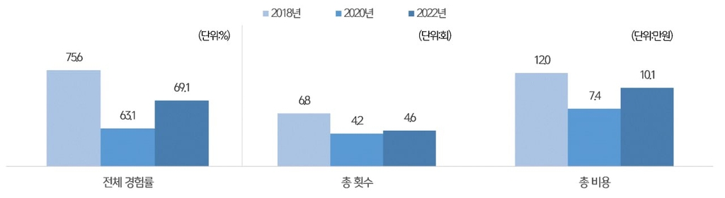 다만 코로나 이전인 2018년에는 연간 12.0만원을 지출하고 6.8회 문화관람을 해 2022년을 상회했다.