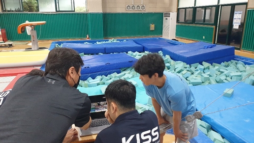 | ▲ 체조 도마의 신 양학선(오른쪽)에게 영상 보여주는 스포츠정책과학원 연구원 [한국스포츠정책과학원 제공. 재판매 및 DB 금지] |