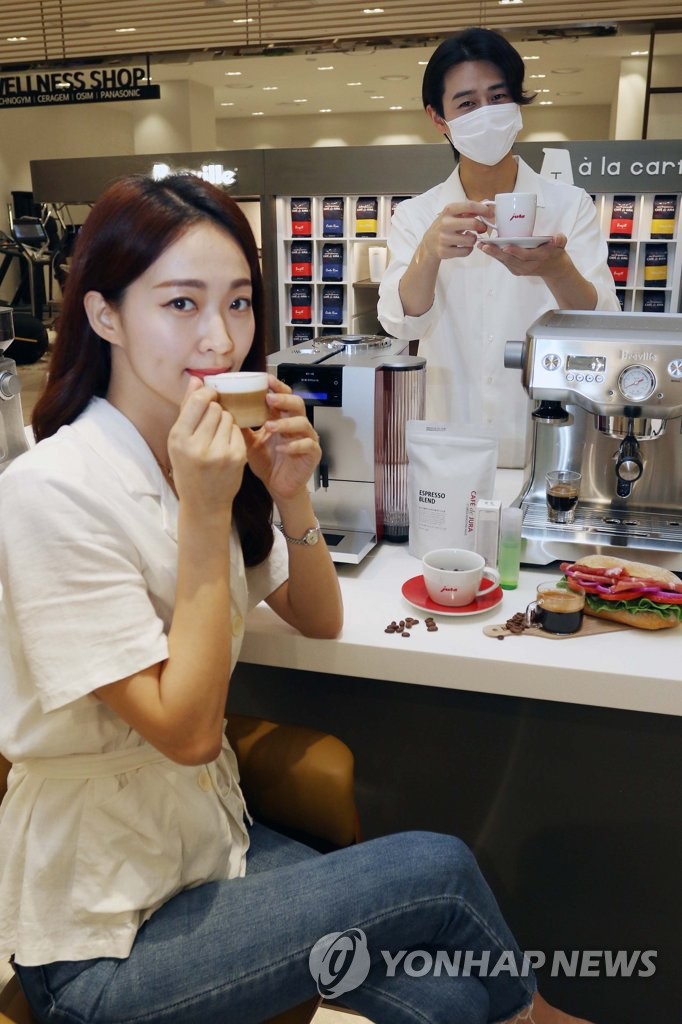 | ▲ 커피, 안전하게 홈카페로 즐기세요 (서울=연합뉴스) 서울 중구 신세계백화점 본점 2층에서 커피머신 브랜드 유라·브레빌 상품을 소개하고 있다. 2021.7.13 [신세계백화점 제공. 재판매 및 DB 금지] photo@yna.co.kr |