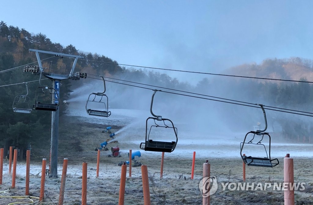 | ▲ 지난 4일 인공눈 뿌리는 스키장 [연합뉴스 자료사진] |
