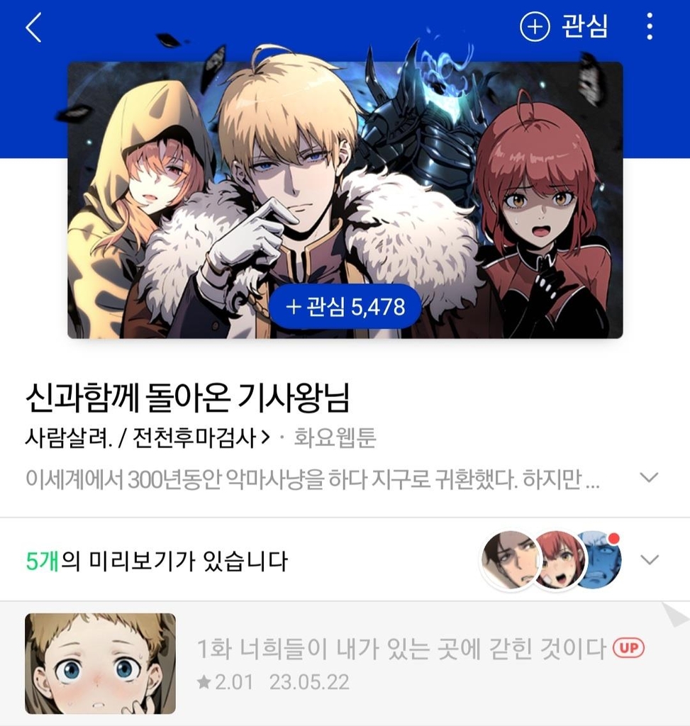 24일 웹툰 업계에 따르면 네이버웹툰 신작 '신과함께 돌아온 기사왕님'이 생성형 AI로 제작됐다는 의혹에 휩싸여 독자들로부터 비난받고 있다.