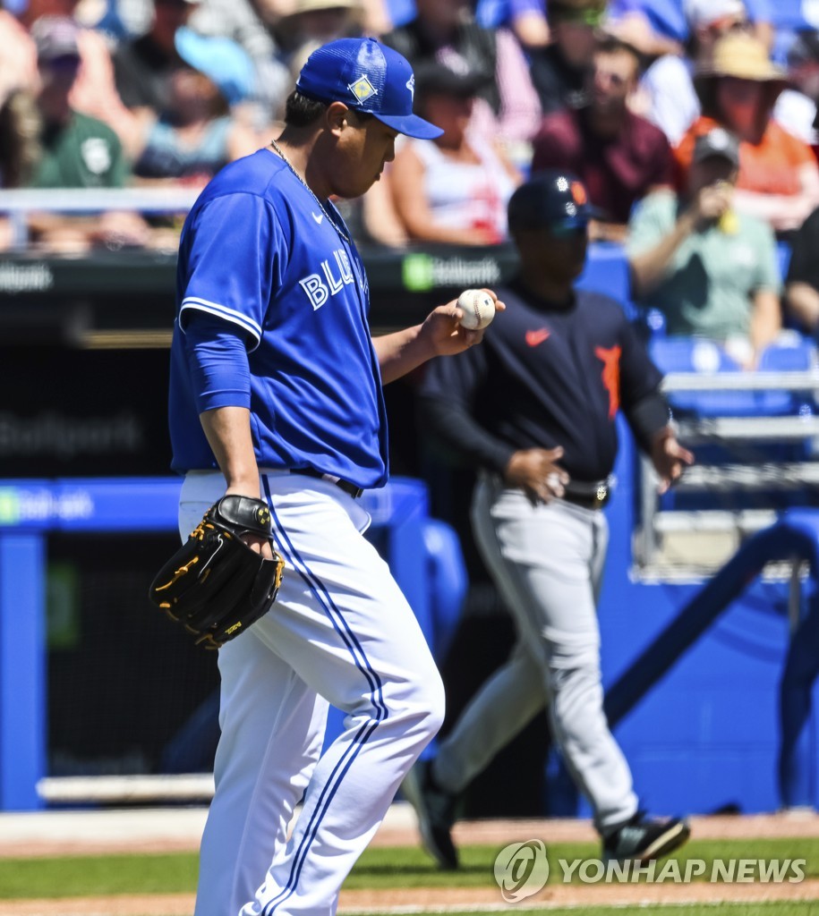 류현진은 26일(한국시간) 미국 플로리다주 더니든 TD볼파크에서 열린 2022 미국프로야구 메이저리그 디트로이트 타이거스와의 시범경기에 선발 등판해 3이닝 동안 4안타를 내주고 3실점 했다. 볼넷은 내주지 않고, 삼진 2개를 잡았다.