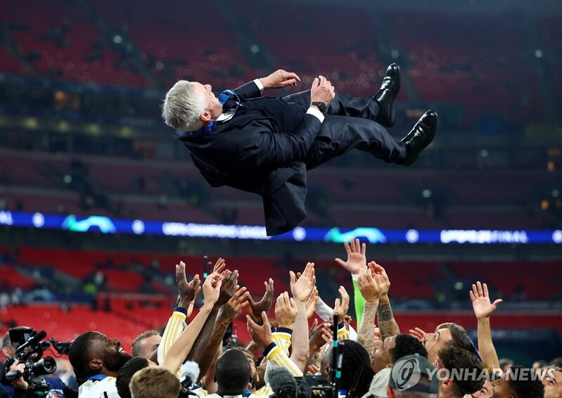 | ▲ 안첼로티 감독 헹가래치는 레알 마드리드 선수들 [로이터=연합뉴스] |