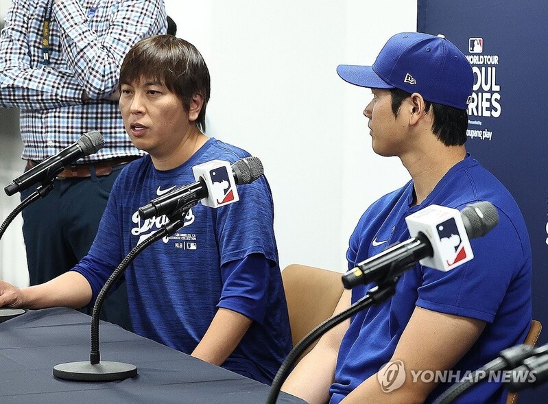 | ▲ 오타니 통역사 미즈하라 3월 16일 서울 고척 스카이돔에서 열린 로스앤젤레스 다저스 기자회견에서 오타니 옆에 배석한 미즈하라 잇페이. [연합뉴스 자료사진] |