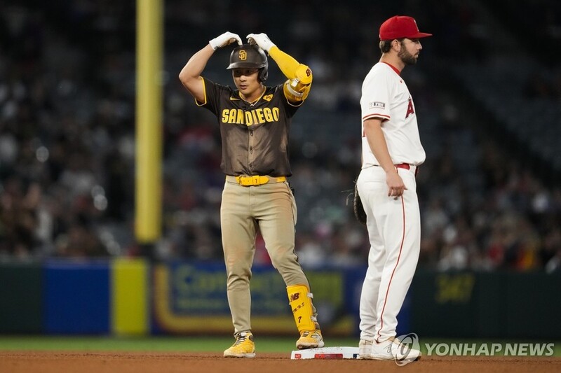 김하성은 2회초 1사 주자 없는 상황, 에인절스 왼손 선발 타일러 앤더슨의 시속 126㎞ 체인지업을 잡아당겨 3루수 옆을 뚫는 2루타를 쳤다.