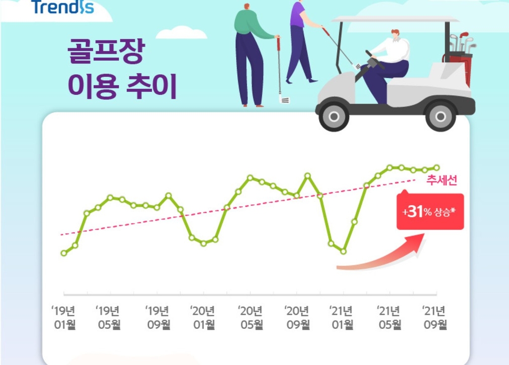 신한카드는 "최근 골프의 진입장벽이 낮아지며 골프를 시작하는 사람이 늘었다"면서 "골프는 계절에 민감한 운동인데 이용 추이를 보면 시즌성을 보이긴 하지만 지속해서 증가하는 추세"라고 설명했다.
