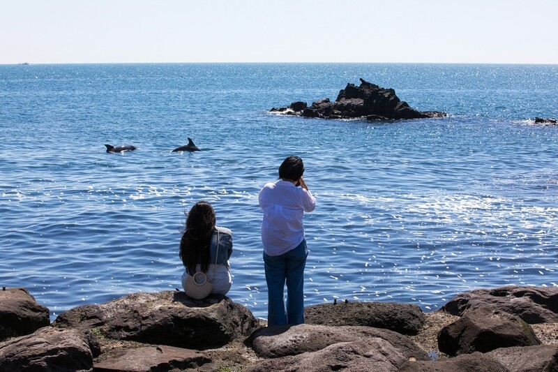 신도리 뿔소라공원, 영락리 포구, 구엄리 돌염전, 김녕 해맞이 해안로 등에선 푸른 제주 바다를 자유롭게 유영하는 돌고래를 만날 수 있다고 소개했다.