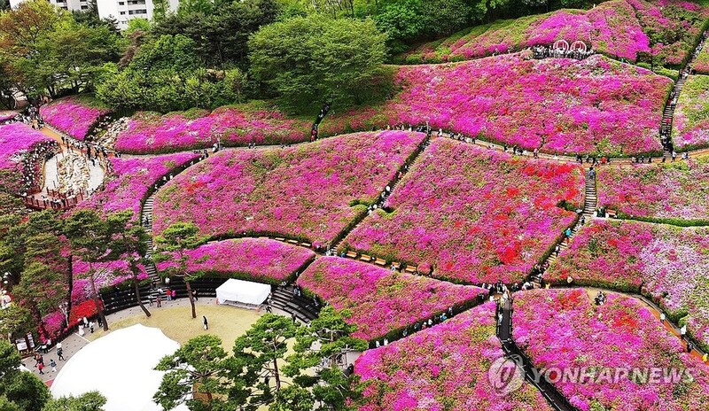 | ▲ 연분홍 철쭉 물결 (군포=연합뉴스) 홍기원 기자 = 21일 '철쭉 축제'가 열리고 있는 경기도 군포시 철쭉동산을 찾은 시민들이 활짝 핀 철쭉을 보며 봄기운을 만끽하고 있다. 2024.4.21 xanadu@yna.co.kr |