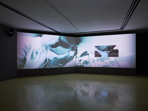 또다른 전시장에서는 2채널 영상이 상영된다. 적외선 망원경으로 보는 듯한 느낌의 영상에서는 옛사람들이 저승과 이승을 이어주는 존재로 생각했던 철새들이나 고대부터 존재해 온 은행잎 등 여러 은유와 암시의 의미를 지닌 상징들이 등장한다. 이 영상은 VR 장치를 착용한 관객이 보는 장면과 실시간으로 연결된다.