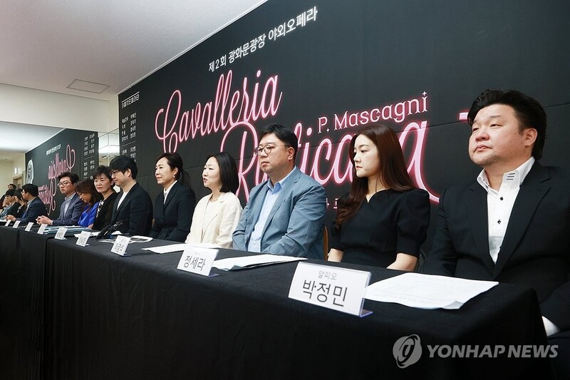 | ▲ 서울시오페라단, 제2회 광화문광장 야외오페라 기자간담회 (서울=연합뉴스) 진연수 기자 = 4일 서울 종로구 세종문화회관에서 열린 서울시오페라단 제2회 광화문광장 야외오페라 '카발레리아 루스티카나' 기자간담회에서 참석자들이 질문을 받고 있다. 2024.6.4 jin90@yna.co.kr |