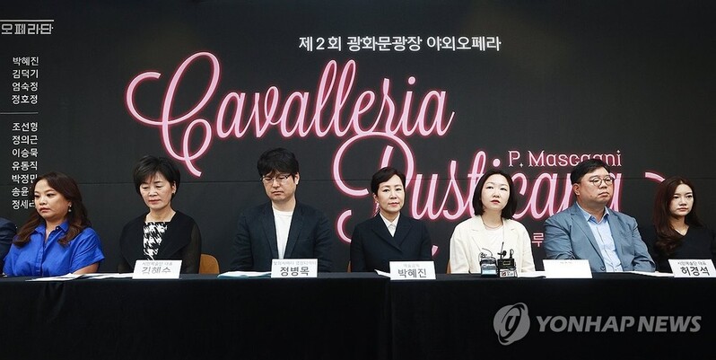 | ▲ 서울시오페라단 야외오페라 '카발레리아 루스티카나' 기자간담회 (서울=연합뉴스) 진연수 기자 = 4일 서울 종로구 세종문화회관에서 열린 서울시오페라단 제2회 광화문광장 야외오페라 '카발레리아 루스티카나' 기자간담회에서 엄숙정 연출가(오른쪽 세번째)가 질문에 답하고 있다. 2024.6.4 jin90@yna.co.kr |