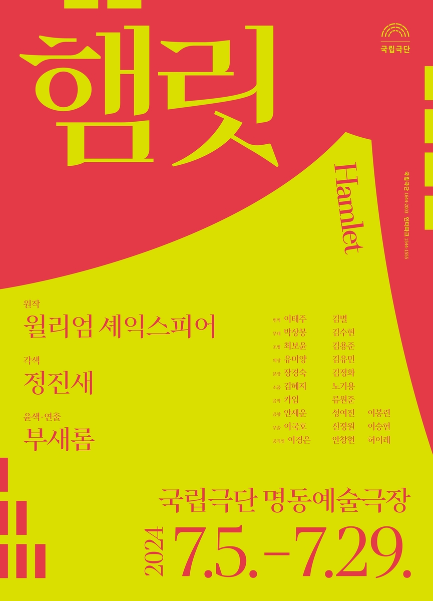 국립극단은 7월 5∼29일 서울 명동예술극장에서 셰익스피어 원작의 연극 '햄릿'을 공연한다고 29일 밝혔다.