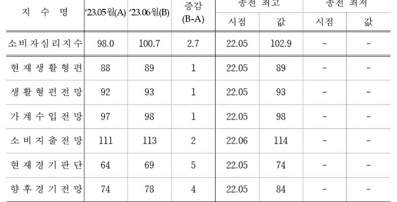 6월 소비자심리지수 100.7…"대면활동 확대·물가 둔화 등 영향"