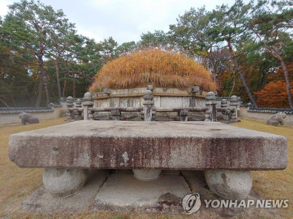 (서울=연합뉴스) 김예나 기자 = 조선을 건국한 태조 이성계(재위 1392∼1398)의 무덤 앞에 놓여 있던 둥근 돌 일부가 교체된다.