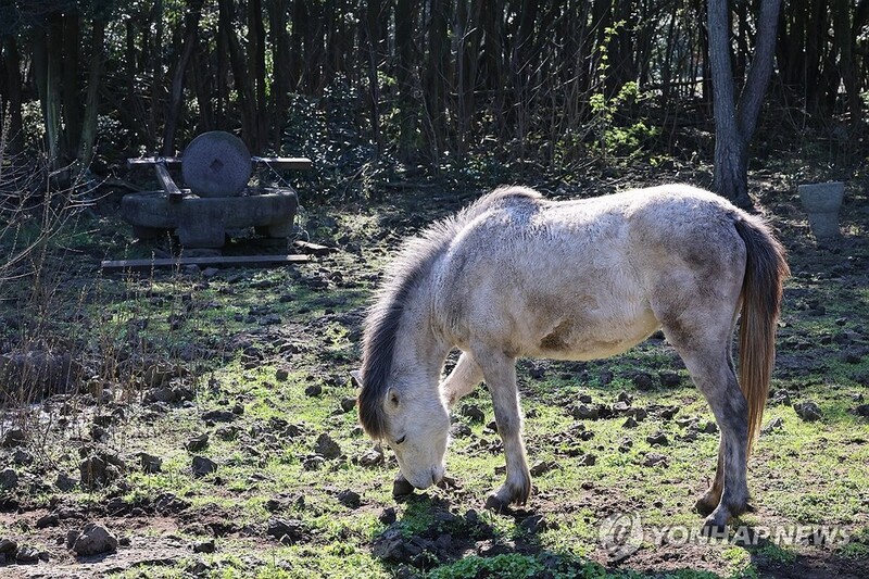 | ▲ 곶자왈의 제주마 (제주=연합뉴스) 제주시 한경면 저지리 곶자왈에서 제주마가 휴식하고 있다. [연합뉴스 자료사진] |