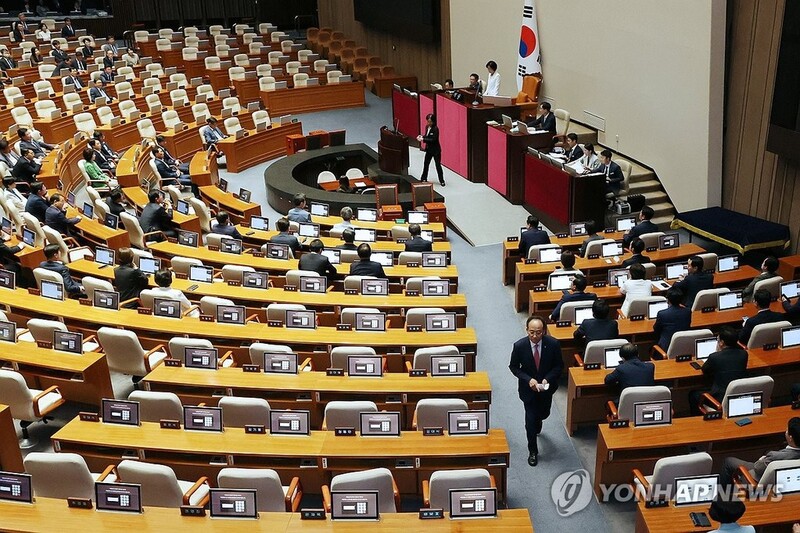 It marked the first time in South Korea's constitutional history that the first plenary meeting of the parliament opened unilaterally without the ruling party.