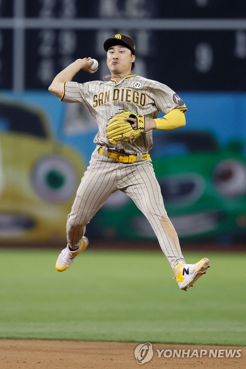▲ 김하성 1루에 점프 송구 [게티이미지/AFP=연합뉴스]