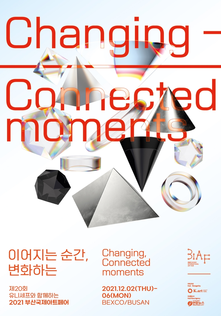 20일 케이아트(K-ART) 국제교류협회에 따르면 2021 부산국제아트페어가 '이어지는 순간, 변화하는(Changing, Connected moments)'이라는 슬로건으로 12월 2일부터 6일까지 5일간 부산 해운대구 벡스코 제2전시장에서 열린다.