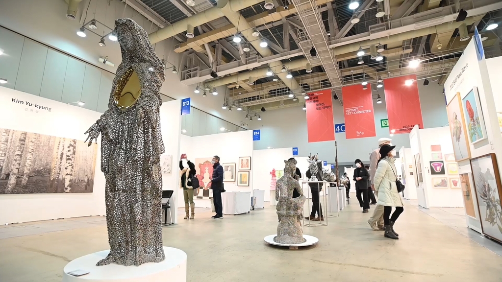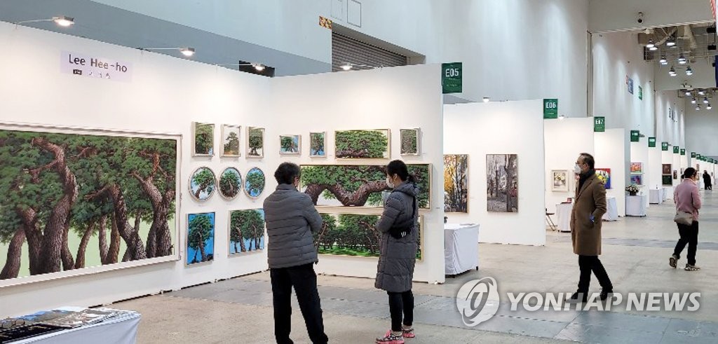 | ▲ 부산국제아트페어 야간 전시 [자료사진] (부산=연합뉴스) 조정호 기자 = 지난 4일 부산 해운대구 벡스코 제2전시장에서 부산국제아트페어에서 관람객들이 미술작품을 살펴보고 있다. 2020.12.6 ccho@yna.co.kr |