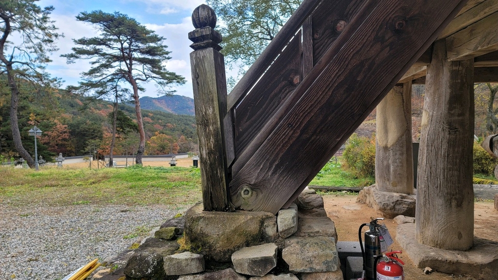 | ▲ 의성 대곡사 종각 목조계단 박 교수는 계단 난간 받침돌을 활용한 계단이 이와 같은 모습일 것으로 추정했다. [김선덕 서진문화유산보존연구소장 제공. 재판매 및 DB 금지] |