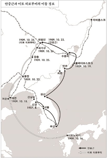 | ▲ 소설 '하얼빈' 속 안중근과 이토 히로부미의 이동 경로 [교보문고 홈페이지 캡처. 재판매 및 DB 금지] |