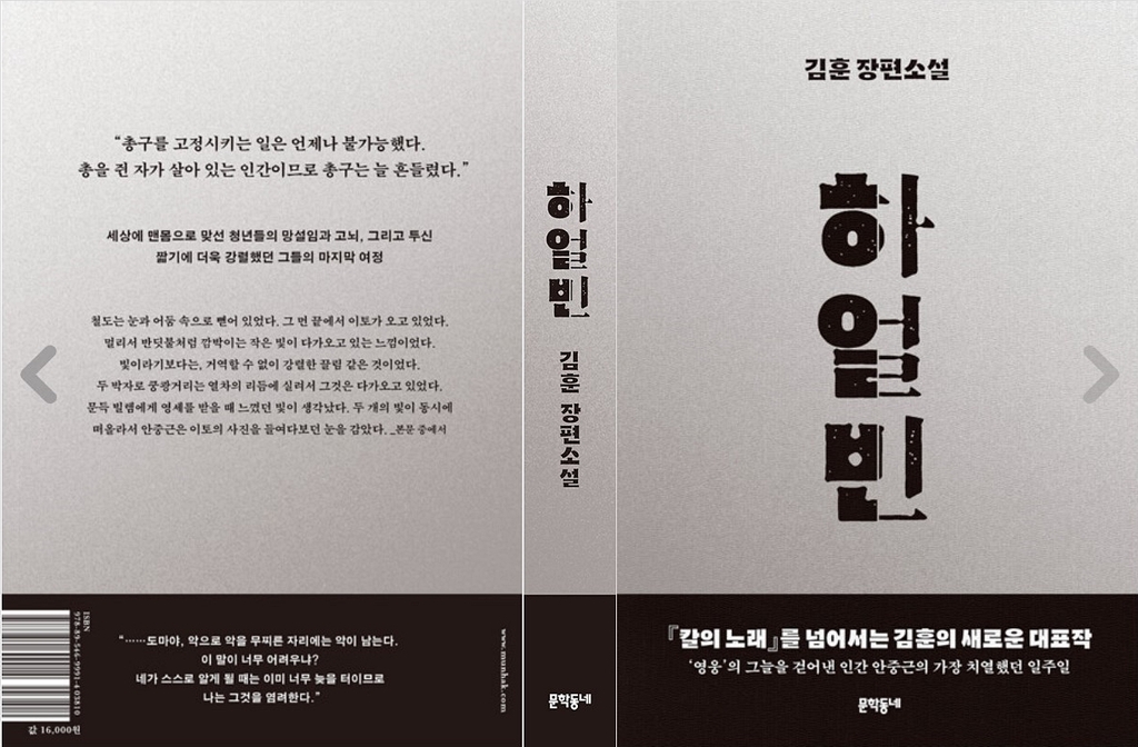 | ▲ 김훈 신작 장편소설 '하얼빈' 표지 앞뒷면 [알라딘 홈페이지 캡처. 재판매 및 DB 금지] |