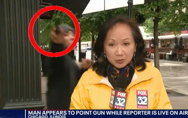 중국계 중견기자 조니 럼이 시카고 번화가의 교차로 인근에서 총기폭력 실태에 관한 뉴스를 실시간으로 전하고 있던 때, 짙은 회색 후드티셔츠를 입은 한 흑인 남성이 갑자기 화면에 나타나 럼의 바로 뒤에서 카메라를 응시하며 총을 겨누고 유유히 사라지는 장면이 그대로 생중계 됐다.