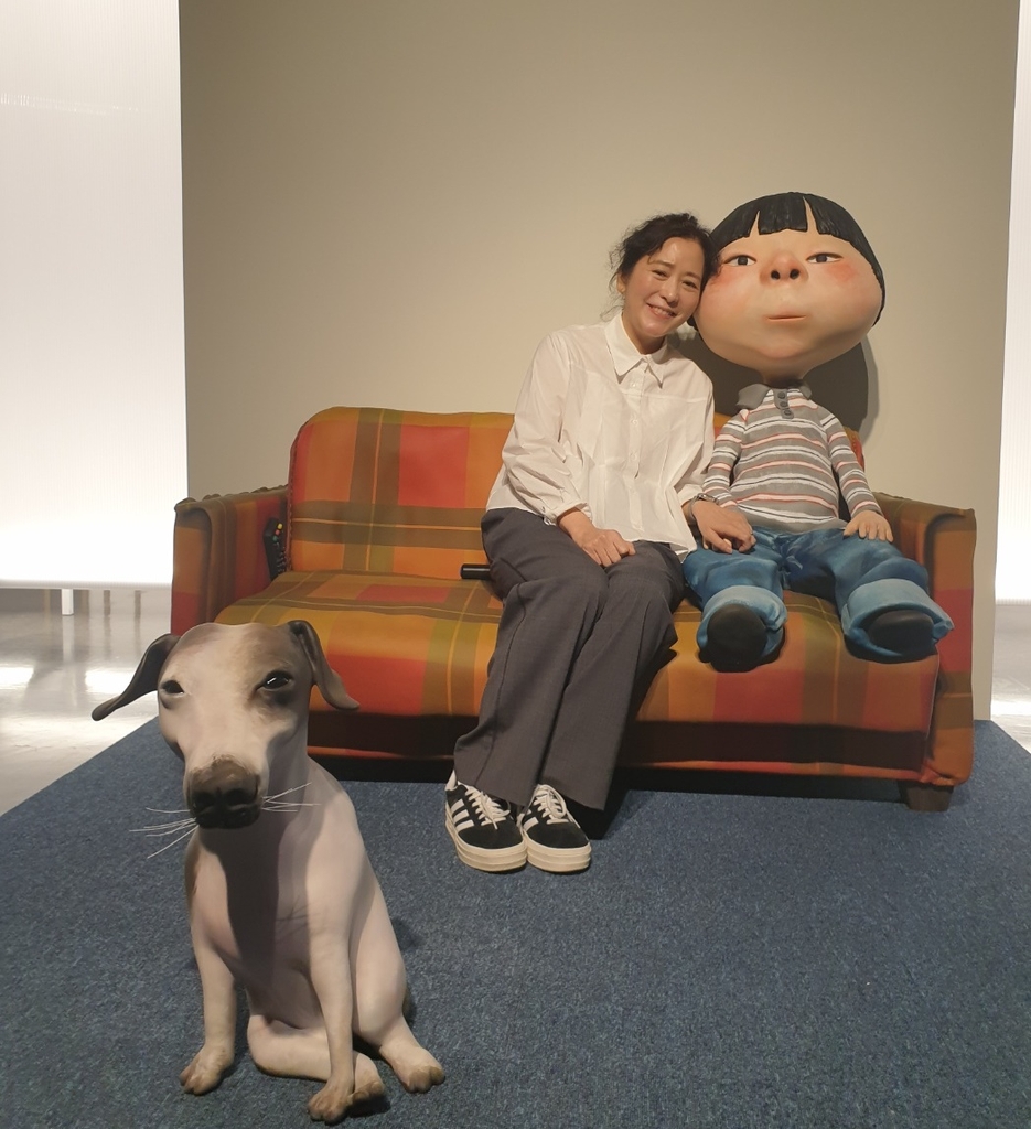 | ▲ '알사탕' 동동이와 백희나 작가 (서울=연합뉴스) 황희경 기자 = 백희나 작가가 21일 서울 예술의전당 한가람미술관에서 열린 기자간담회에서 자신의 작품 '알사탕'에 등장하는 캐릭터로 꾸민 포토존에서 포즈를 취하고 있다. 2023.6.22 zitrone@yna.co.kr |
