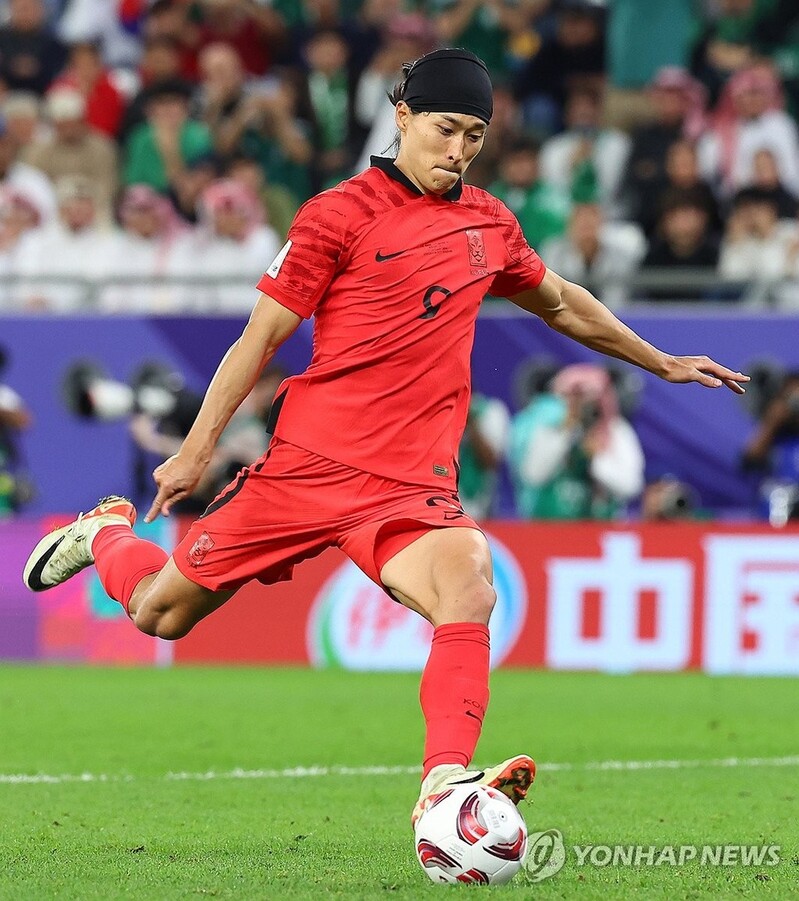 | ▲ 조규성 (알라이얀=연합뉴스) 김도훈 기자 = 30일(현지시간) 카타르 알라이얀 에듀케이션 시티 스타디움에서 열린 2023 아시아축구연맹(AFC) 아시안컵 16강전 한국과 사우디아라비아의 경기. 승부차기 한국의 세 번째 키커로 나선 조규성이 골을 성공시키고 있다. 2024.1.31 superdoo82@yna.co.kr |