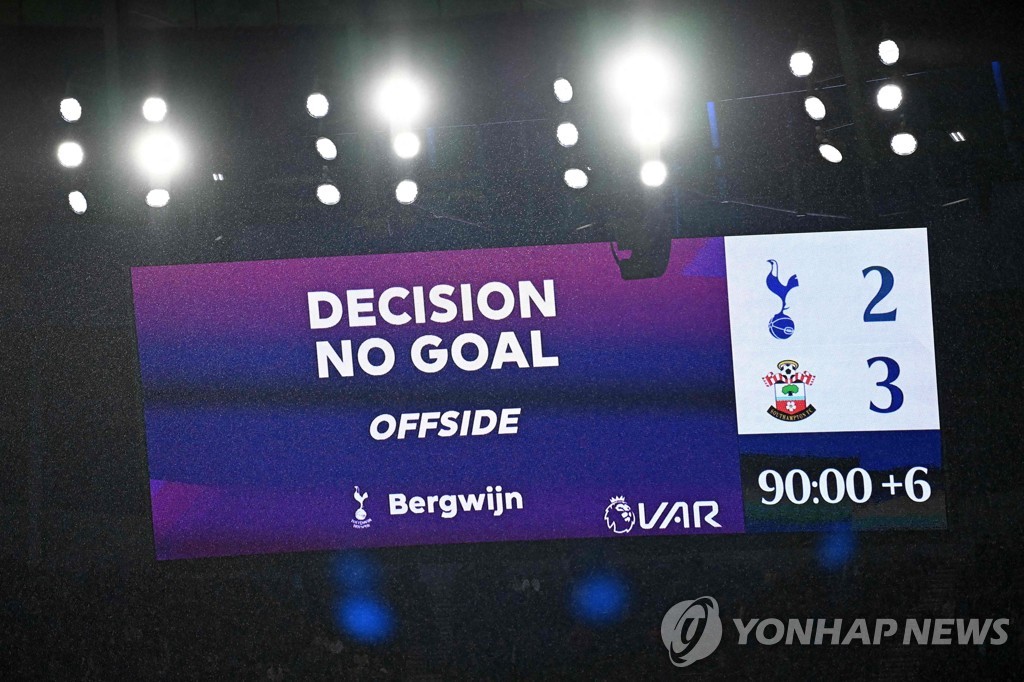 | ▲ 오프사이드로 무산된 토트넘의 마지막 골 [AFP=연합뉴스] |