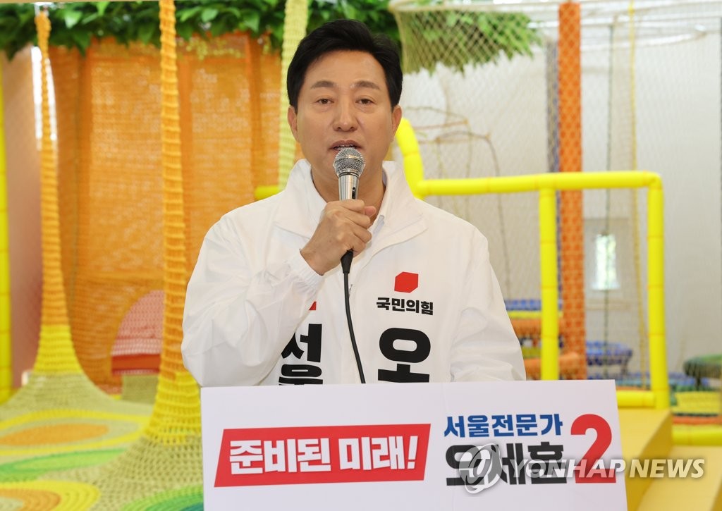 | ▲ 가족안심 대책 발표하는 오세훈 후보 (서울=연합뉴스) 백승렬 기자 = 국민의힘 오세훈 서울시장 후보가 지난 18일 오후 서울시 종로구 국민생활관에 건설 중인 서울형 키즈카페 공사 현장을 방문, 가족안심 대책을 발표하고 있다. 2022.5.19 srbaek@yna.co.kr |