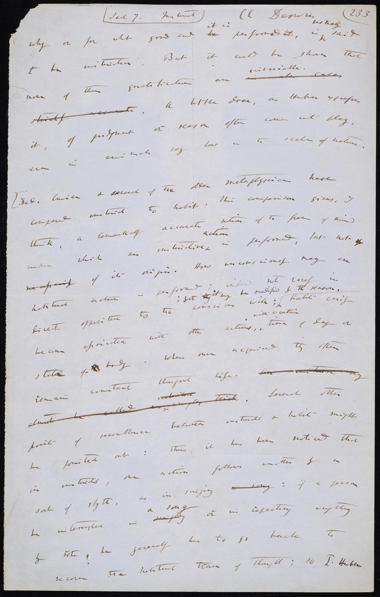 다윈은 지워진 한 문장에서 '본능은 거의 공허한 속임수라고 할 수 있다'고 말했다.