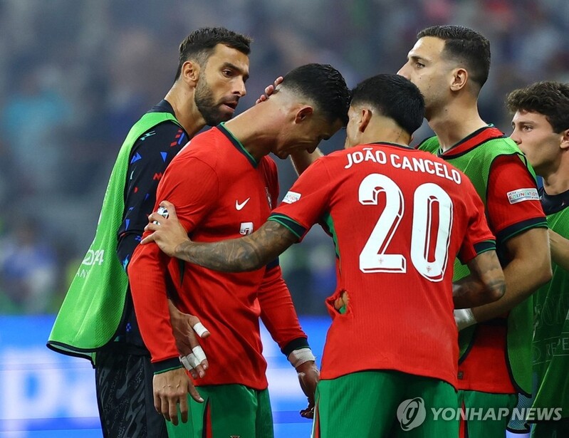 | ▲ 페널티킥 실축 뒤 동료의 위로를 받으며 눈물 짓는 크리스티아누 호날두 [로이터=연합뉴스] |