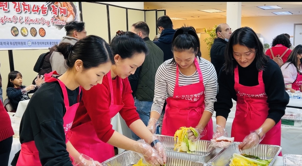 K-김치세계연대 워싱턴DC위원회는 20일(현지시간) 이 단체가 주최하고 미주한미여성회총연합회가 주관한 김치나눔축제를 전날 버지니아주 페어팩스 카운티에서 개최했다고 밝혔다.