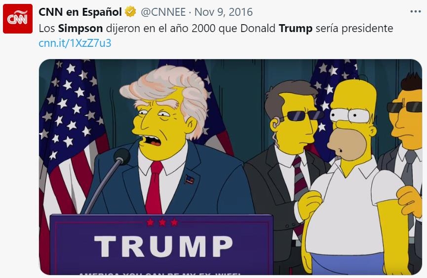 | ▲ 2016년 화제가 됐던 '심슨 가족'의 "도널드 트럼프 대통령" 설정 [CNN 엑스(X) 게시물 캡처. 재판매 및 DB 금지] |