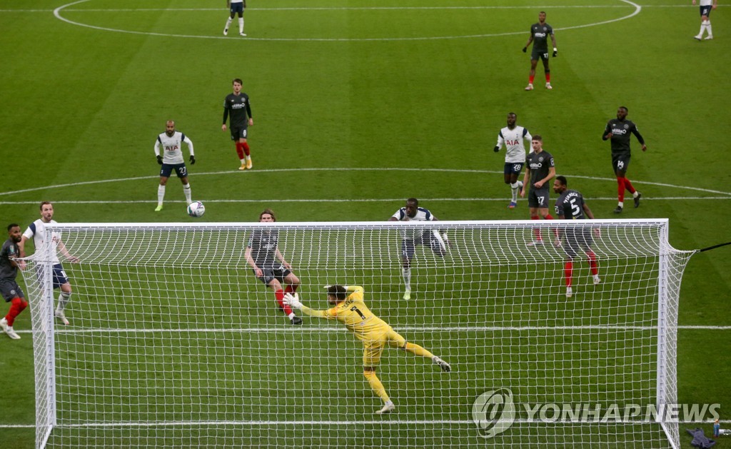 | ▲ Britain Soccer EFL Cup Tottenham's Son Heung-min, right, scores his side's second goal past Brentford's goalkeeper David Raya Martin during the EFL Cup semi-final soccer match between Tottenham Hotspur and Brentford at Tottenham Hotspur Stadium in London, England, Tuesday, Jan. 5, 2021. (Glyn Kirk/Pool via AP) POOL PHOTO |