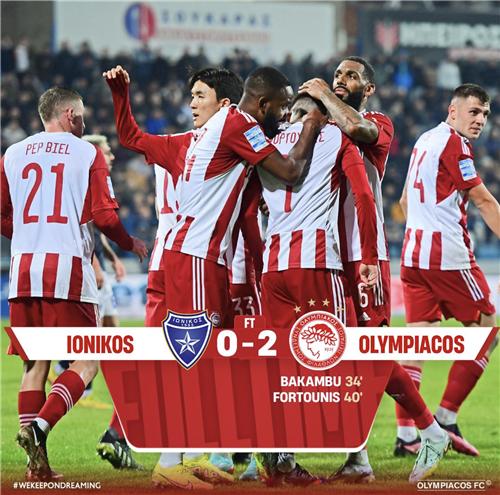 | ▲ 이오니코스 원정서 승리한 올림피아코스 [올림피아코스 트위터 캡처. 재판매 및 DB 금지] |